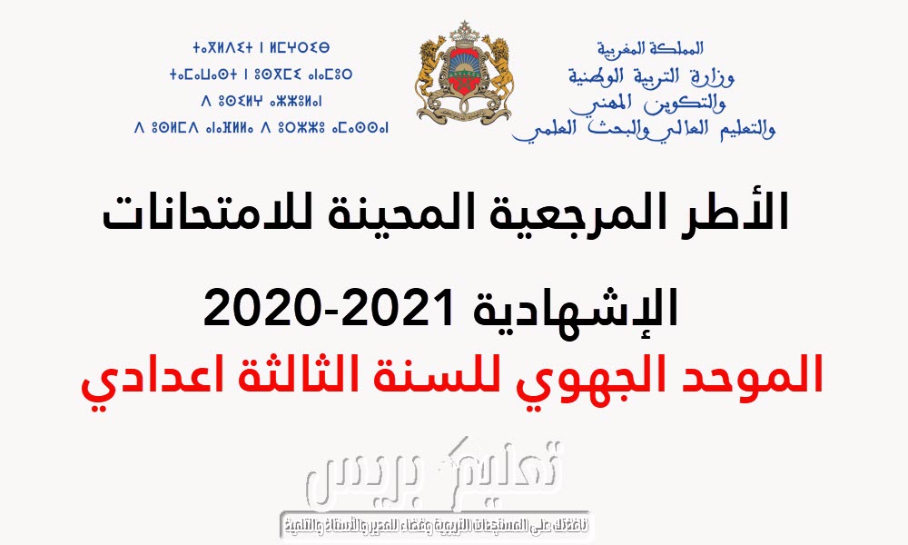 الأطر المرجعية المحينة للموحد الجهوي للسنة الثالثة اعدادي 2021