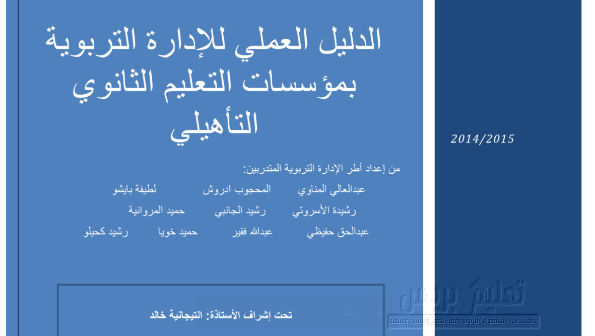 الدليل العملي للإدارة التربوية بمؤسسات التعليم الثانوي التأهيلي الدليل العملي للإدارة التربوية بمؤسسات التعليم الثانوي التأهيلي الدليل العملي للإدارة التربوية بمؤسسات التعليم الثانوي التأهيلي الدليل العملي للإدارة التربوية بمؤسسات التعليم الثانوي التأهيلي تحميل الدليل نقترح عليك تجربة هذه التطبيقات المفيدة: تحميل تطبيق منصة التعليم عن بعد moutamadris تحميل تطبيق مسار متمدرس تعلم الانجليزية بسهولة منصة التلميذ 2023 إليك أهم المواضيع المشابهة:تجميعية لأهم الموارد المساعدة في اجتياز مباراة الإدارة التربوية…مهام الحارس العام للخارجية والداخلية الثانوي الإعدادي و التأهيلياضافة ملاحظات الاستاذ (مسار) بسهولة تابع ….مجالس المؤسسة التعليمية: دورها وأهميته في تطوير العملية التعليمية موقع المفيد التربوي المفيد رفيقكم نحو النجاح، ستجدون جميع الدروس لجميع المستويات والمسالك بالإضافة الى نماذج الفروض والامتحانات المحلية والجهوية والوطنية ...