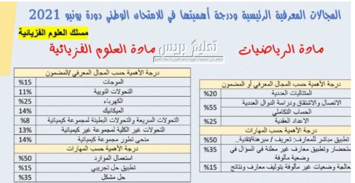 1- المجالات المعرفية الرئيسية وأهميتها في الامتحان الوطني للبكالوريا يونيو 2021