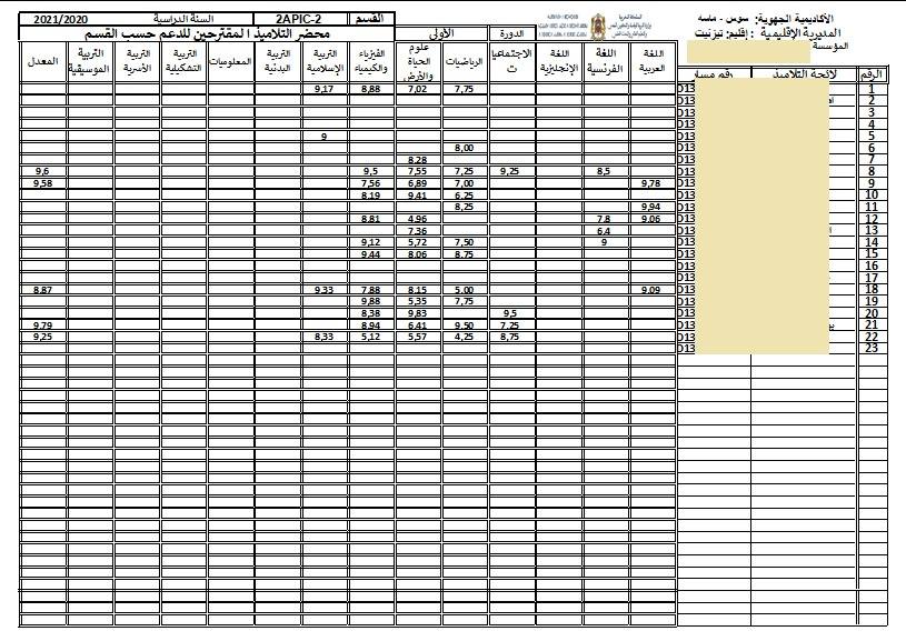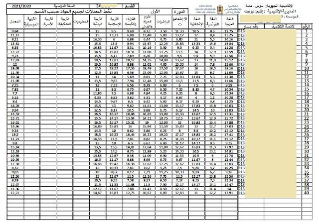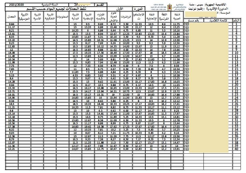 إليكم برنام استثمار النقط الخاص بالسلك الإعدادي 2021 من اعداد وتصميم ذ ادريس مساعد