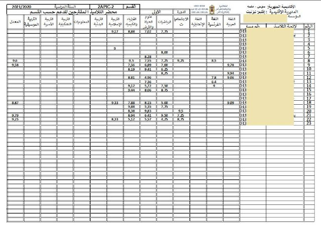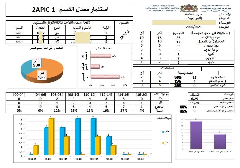 - طبع المجمل حسب القسم وحسب المستوى وحسب المسلك