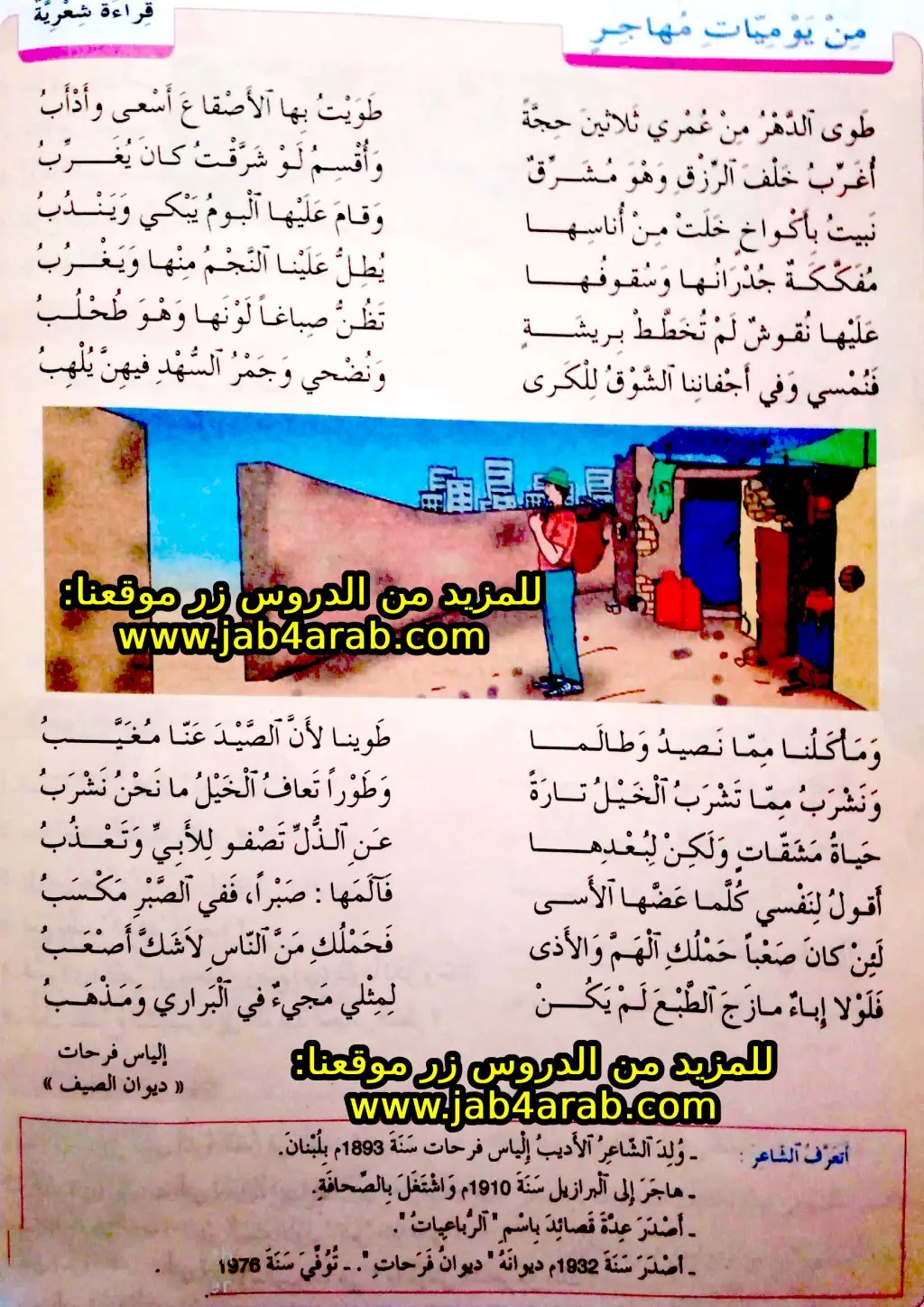 تحضير قصيدة من يوميات مهاجر إلياس فرحات (الأولى إعدادي)