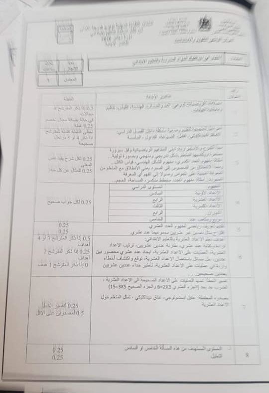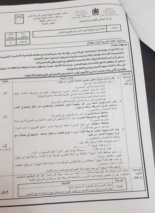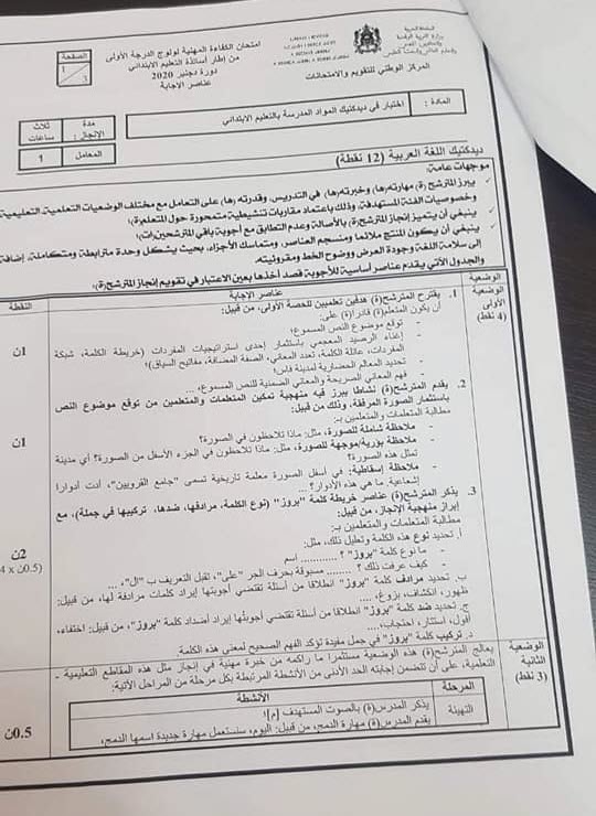 عناصر الاجابة لامتحانات الكفاءة المهنية ابتدائي دجنبر 2020