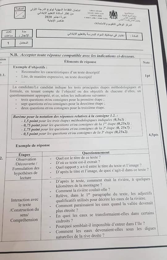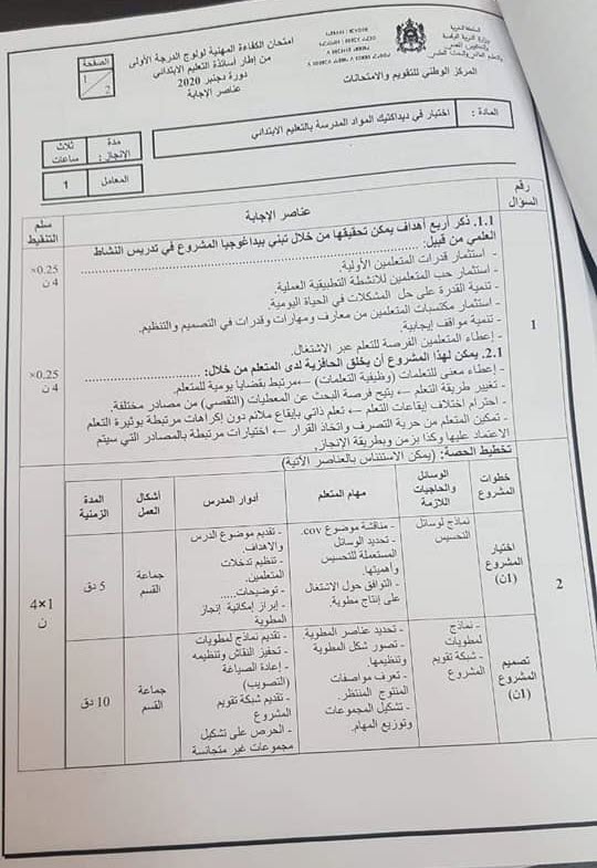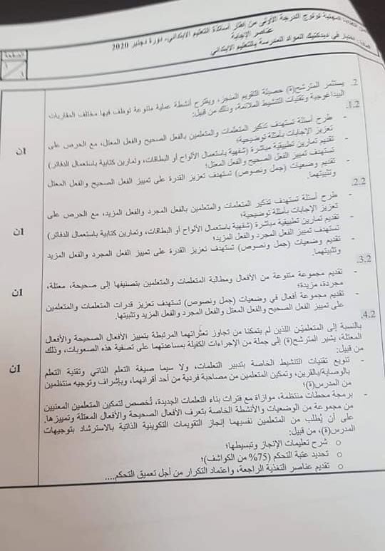 تصحيح الامتحان المهني لولوج الدرجة الأولى التعليم الابتدائي دورة دجنبر 2020