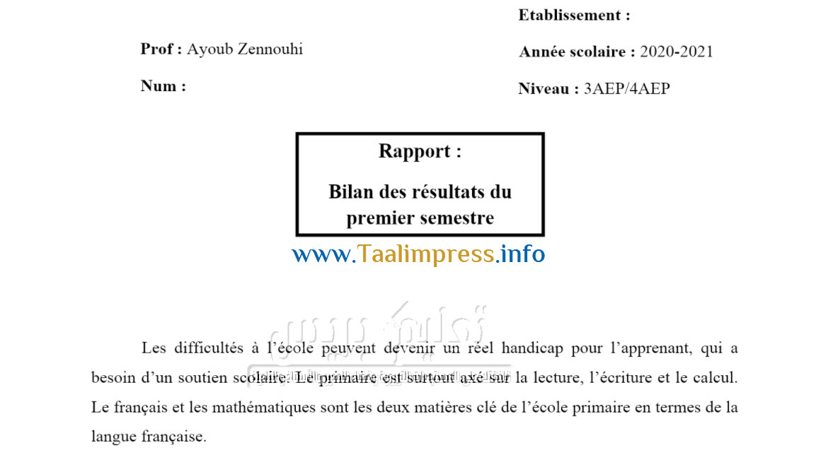 تقرير نتائج الأسدوس الأول فرنسية 3+4 قابل للتعديل