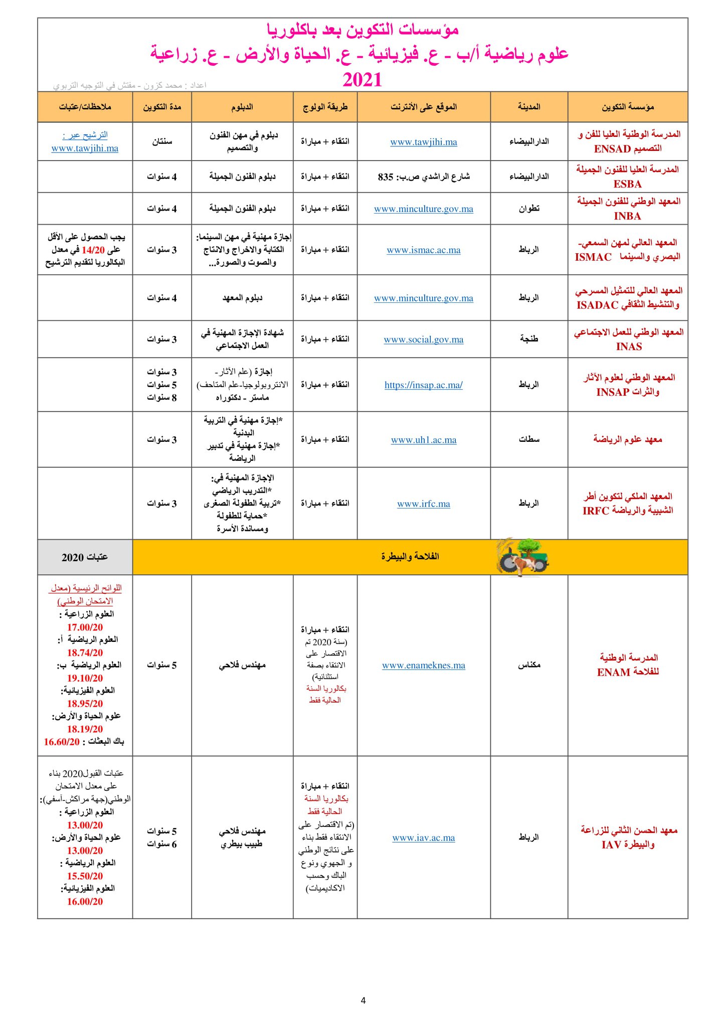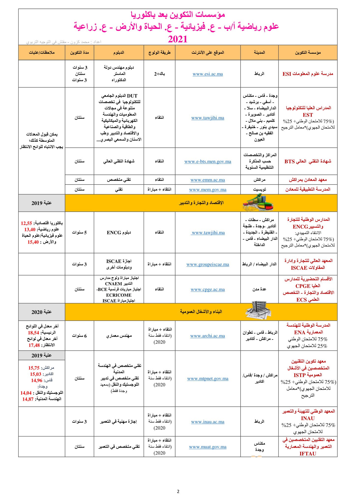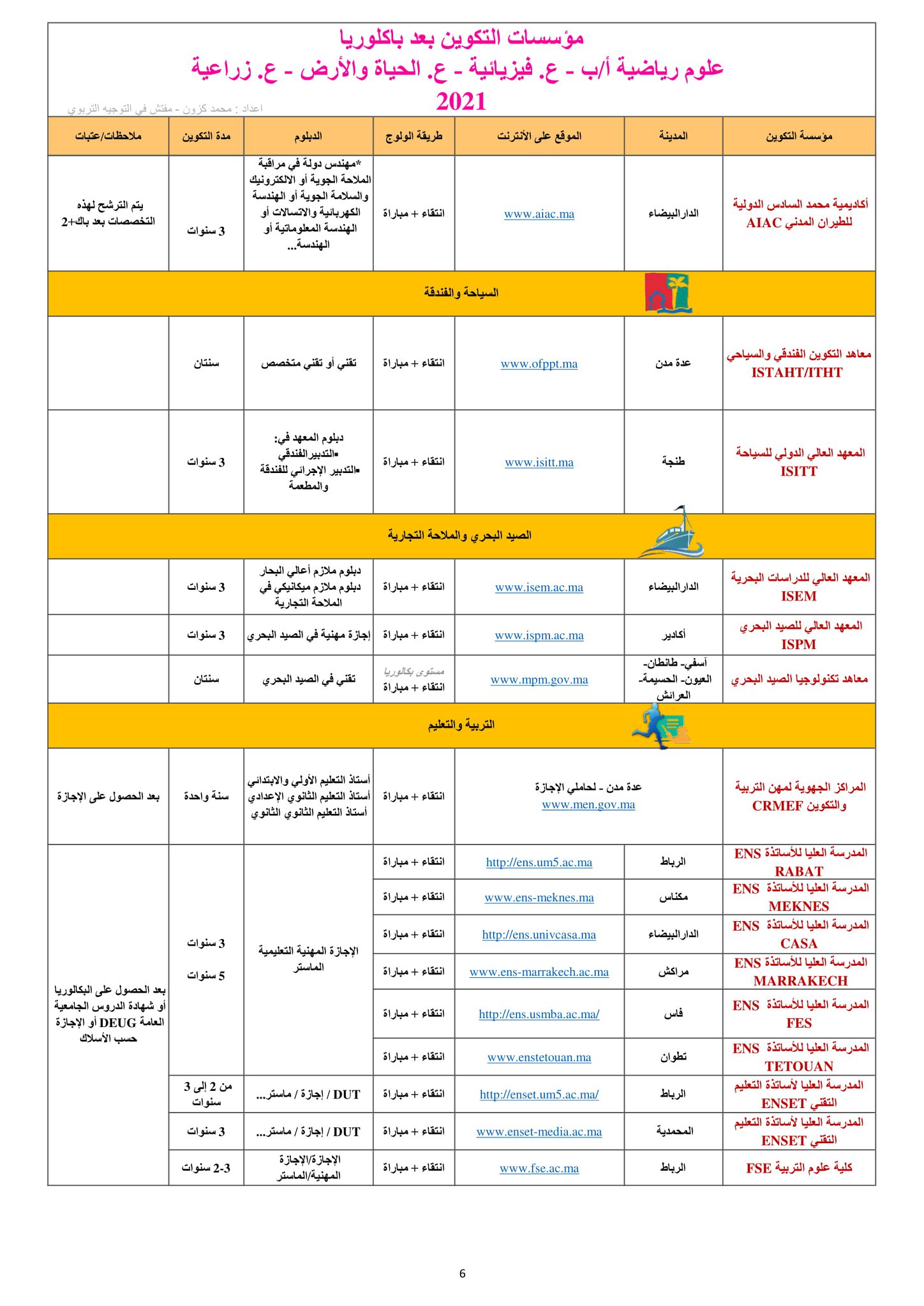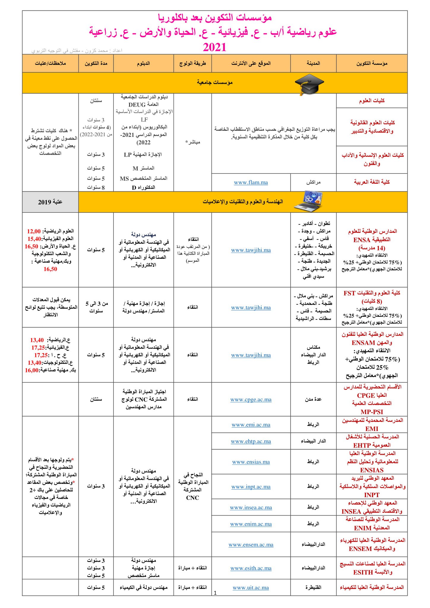 دليل محين يضم الآفاق الدراسية والتكوينية لجميع مسالك شعبتي العلوم التجريبية والعلوم الرياضية (SMA-SMB-S.Agro-SVT-PC)