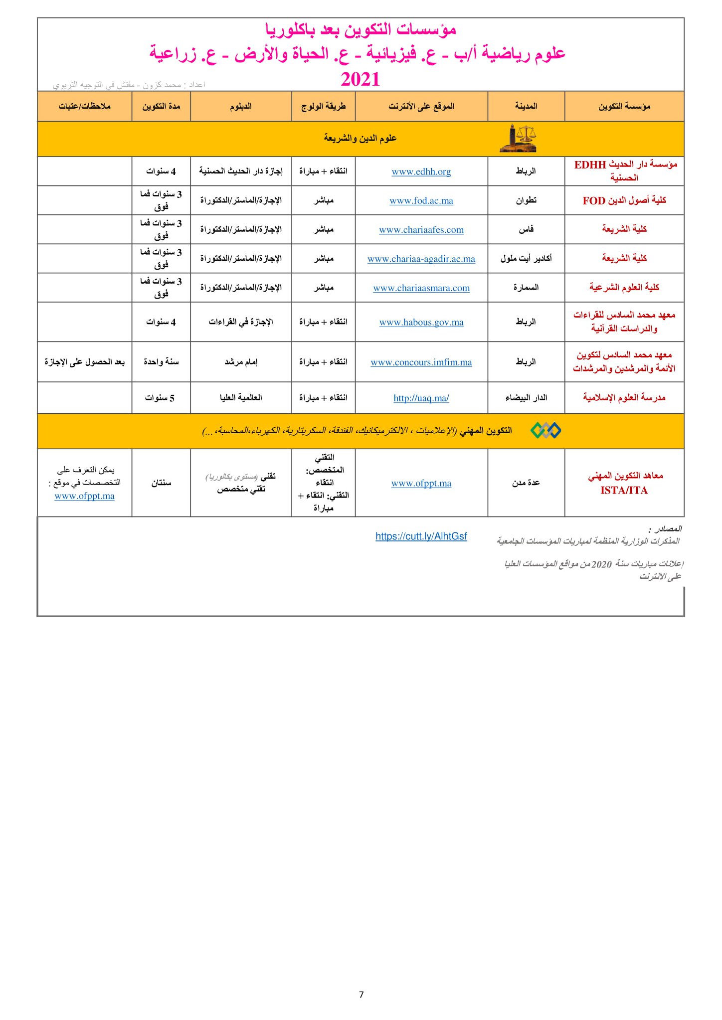لجميع مسالك شعبتي العلوم التجريبية والعلوم الرياضية