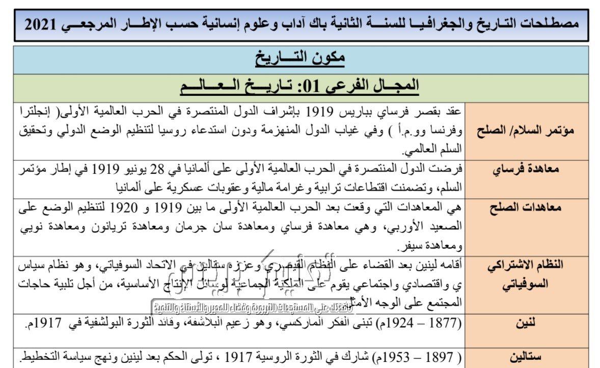 مصطلحات ومفاهيم التاريخ والجغرافيا السنة الثانية من سلك البكالوريا شعبة الآداب والعلوم الإنسانية وفق الإطار المرجعي لسنة 2021