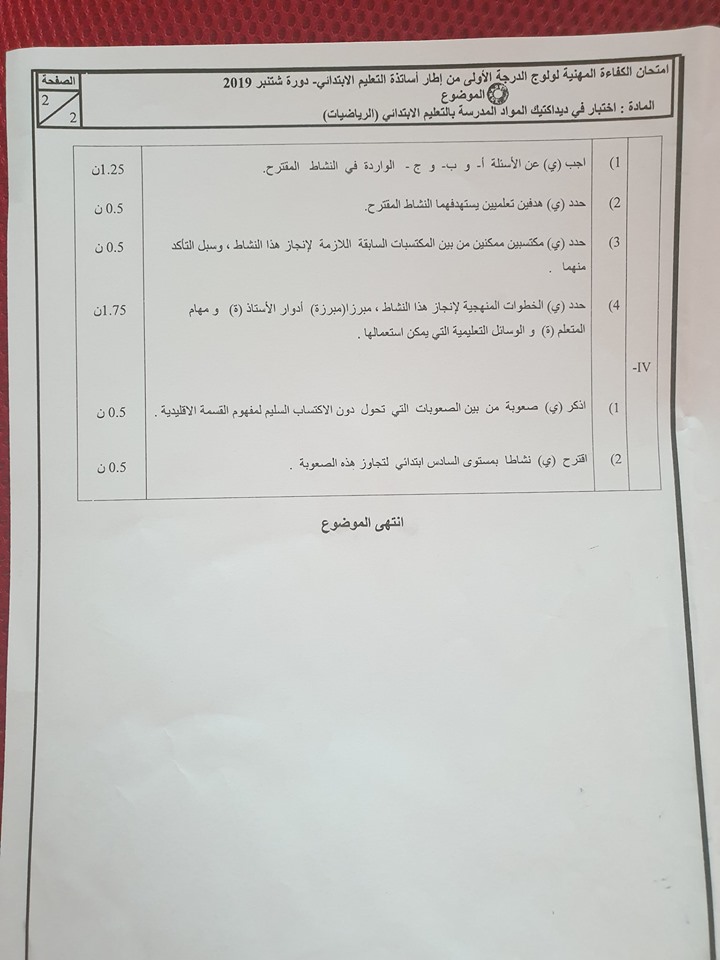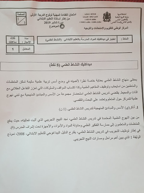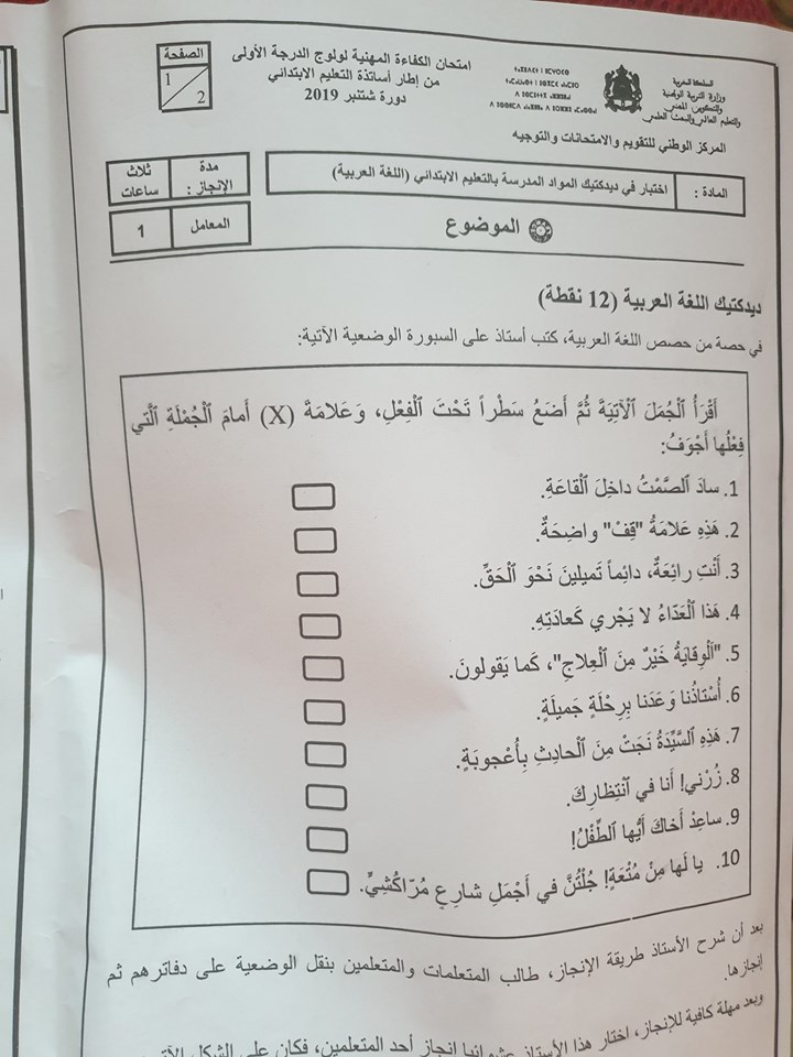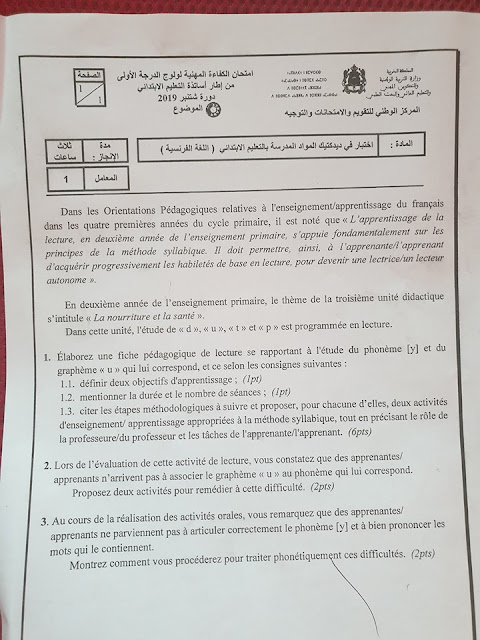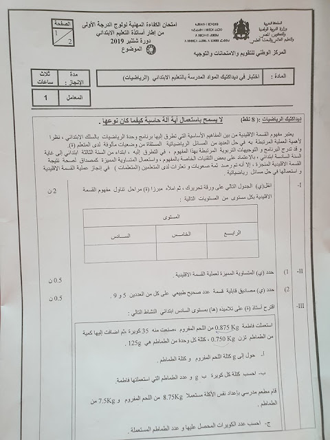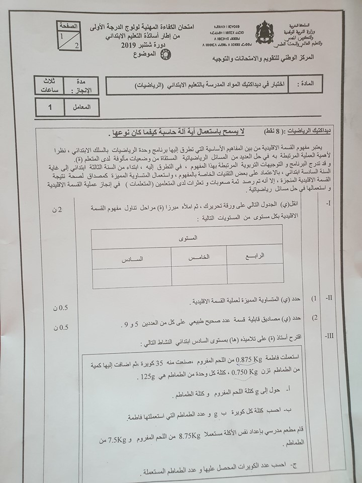مواضيع امتحان الكفاءة المهنية لولوج الدرجة الأولى