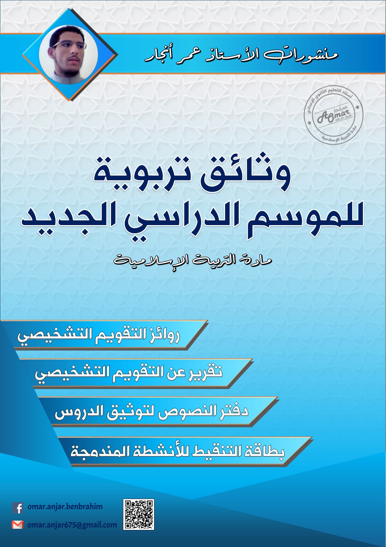 وثائق تربوية مادة التربية الاسلامية لموسم 2022 2021 وثائق تربوية مادة التربية الاسلامية لموسم 2022 2021 روائز التقويم التشخيصي تقرير عن التقويم التشخيصي دفتر النصوص لتوثيق الدروس بطاقة التنقيط للانشطة المندمجة اعداد ذ عمر أنجار جزاه الله خيرا تحميل الوثائق نقترح عليك تجربة هذه التطبيقات المفيدة: تحميل تطبيق منصة التعليم عن بعد moutamadris تحميل تطبيق مسار متمدرس تعلم الانجليزية بسهولة منصة التلميذ 2023 إليك أهم المواضيع المشابهة:نظام امتحان نيل شهادة السلك الإعداديدروس في مادة الاجتماعيات الثانية إعداديتطبيق أسئلة وأجوبة لمراجعة اللغة العربية الثالثة إعدادي،تمارين وحلول حول المعادلات والمتراجحات (سلسلة 2) الثالثة إعدادي موقع المفيد التربوي المفيد رفيقكم نحو النجاح، ستجدون جميع الدروس لجميع المستويات والمسالك بالإضافة الى نماذج الفروض والامتحانات المحلية والجهوية والوطنية ...